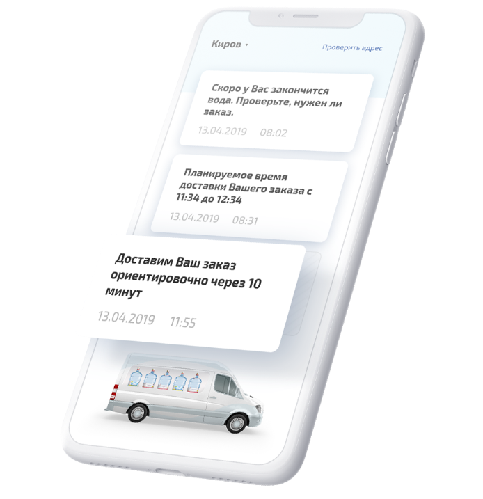 Впервые в городе Киров было разработано мобильное приложения для клиентов с возможностями автозаказа и информированием о доставке (сначала в пуше приходит первое уведомление с часовым интервалом, а потом второе, за 10/20/30 минут на выбор).